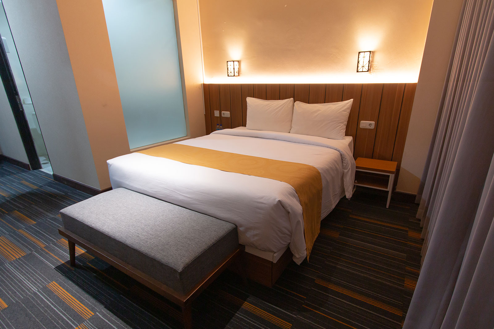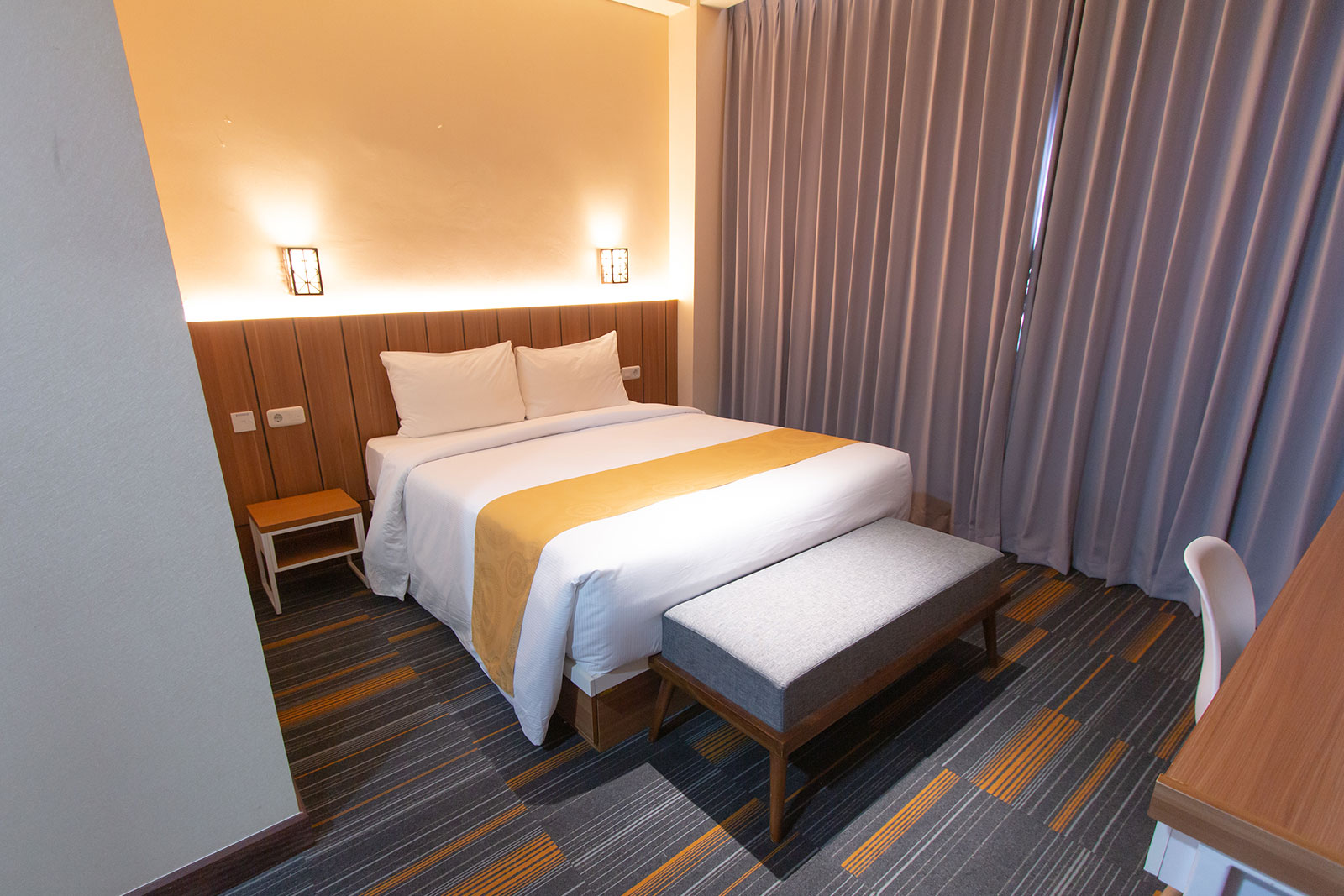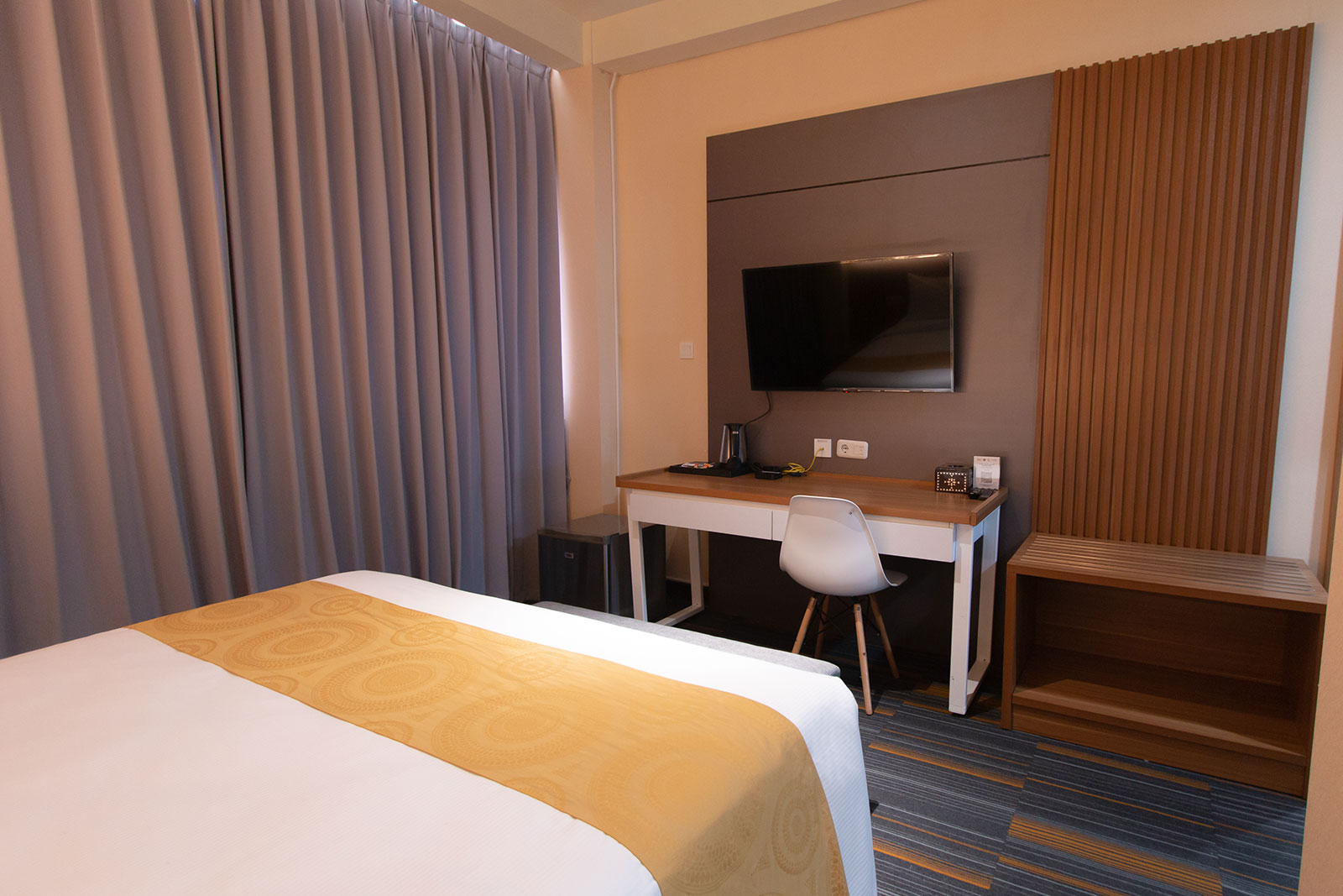 This room has a balcony with an awesome great view that is tapping directly into Rinjani mountain, large windows and a lot of space inside. The room is also supplied with a dressing mirror and chair. Television, mini refrigerator, and other standard superior room set up available.